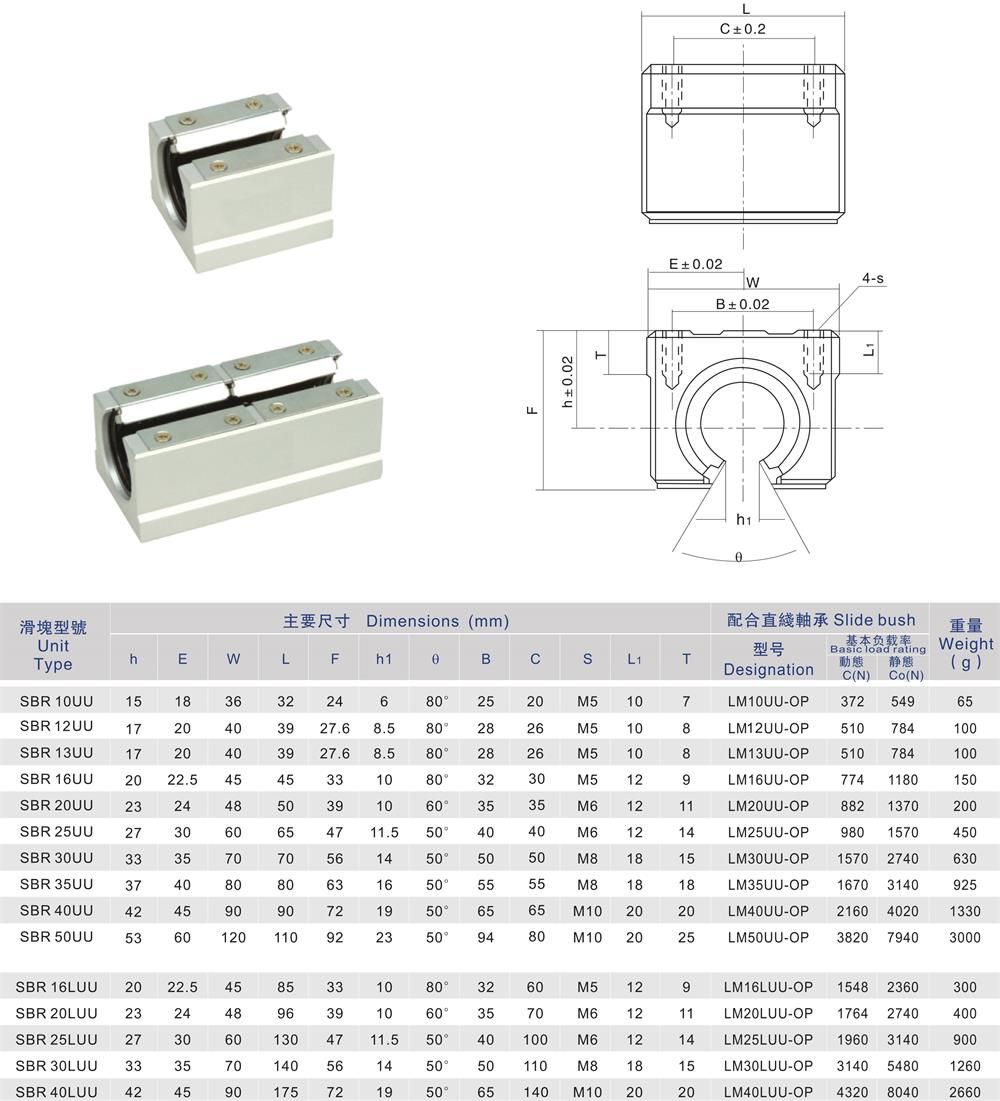 產品名稱:SBR-UU/SBR-LUU